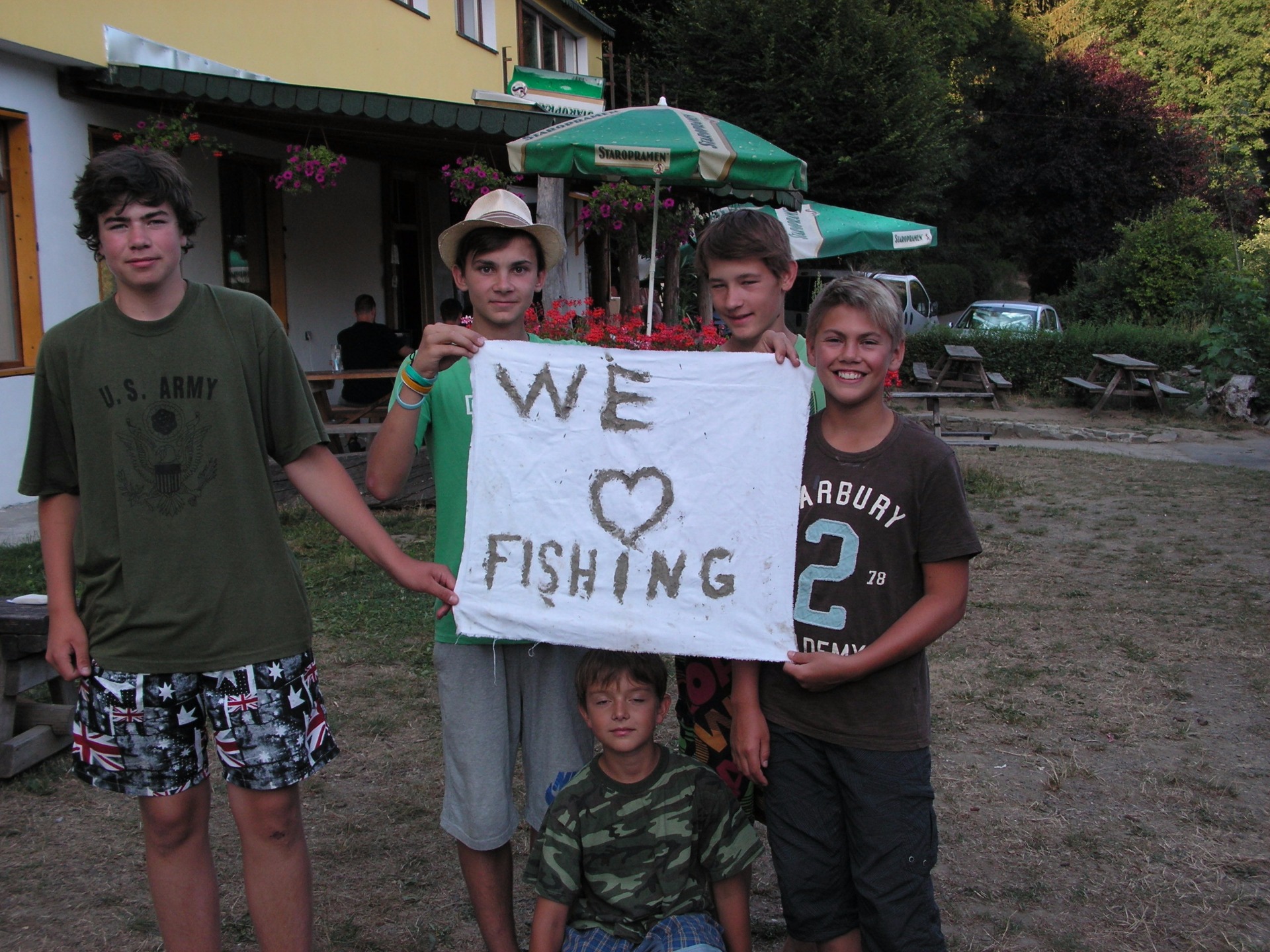 Na čtvrteční den jsme pro děti přichystali první den z rybářských závodů, který se skládal z teorie ( rozpoznávání ryb, rybářský řád ) a hod na cíl. A v pátek se celý den věnovali rybolovu.